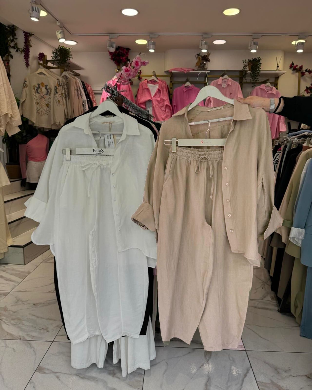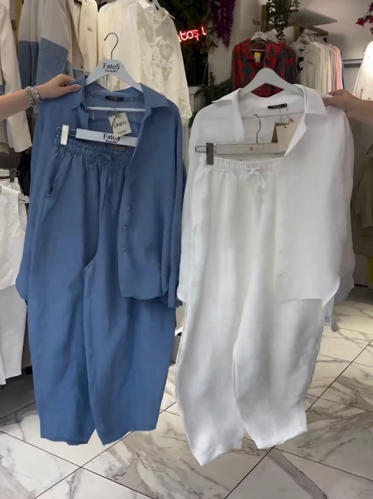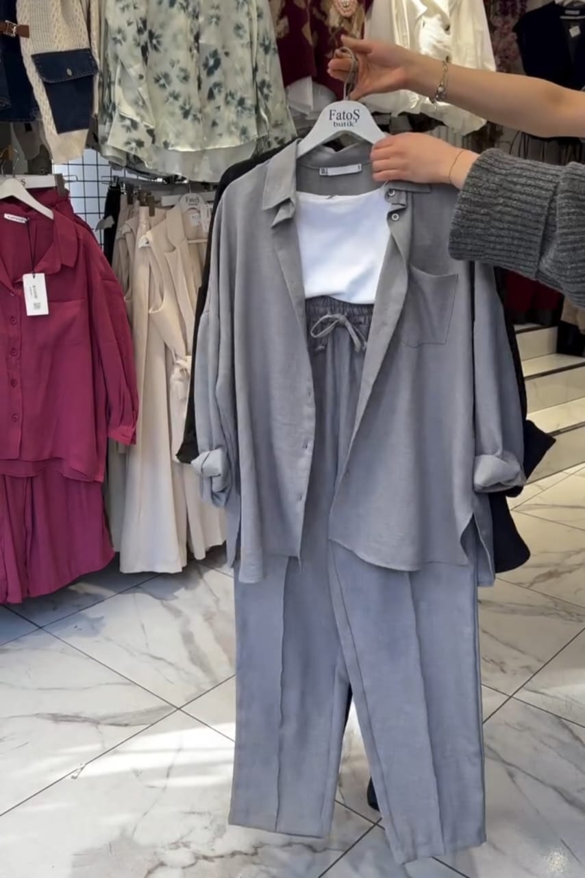 Tailored Fit: Flattering silhouette with a tailored shirt and tapered trousers to enhance your natural shape.