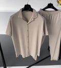 Available in a range of stylish colors, this set is a wardrobe essential for men who want to stay effortlessly fashionable all summer long. Whether you're dressing up for a casual dinner or dressing down for a day in the sun, this shirt and trouser combination will keep you looking sharp and feeling relaxed.